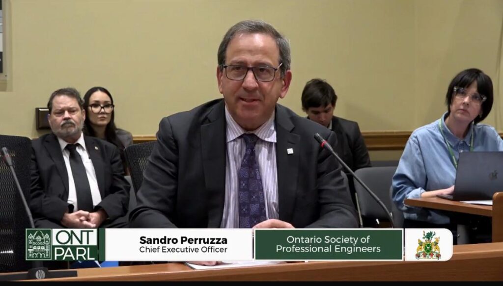 In his remarks before the Standing Committee on Finance and Economic Affairs regarding the 2026 Ontario Budget, OSPE CEO Sandro Perruzza emphasized that Ontario’s engineers are central to achieving the province’s economic, infrastructure, housing, climate, and innovation goals.