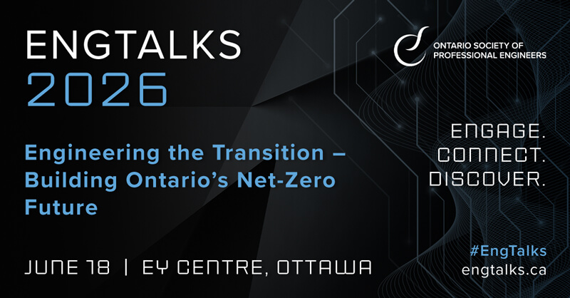 - Join the conversation online via the Society Notes blog and social media – Share your ideas, comments and questions with OSPE in the comments section of our blog, via @O_S_P_E on Twitter and Instagram or @OntarioSocietyOfProfessionalEngineers on Facebook or LinkedIn. Following us on social media is the easiest way to stay informed on all things OSPE and to get timely updates on newsworthy items impacting the engineering community.